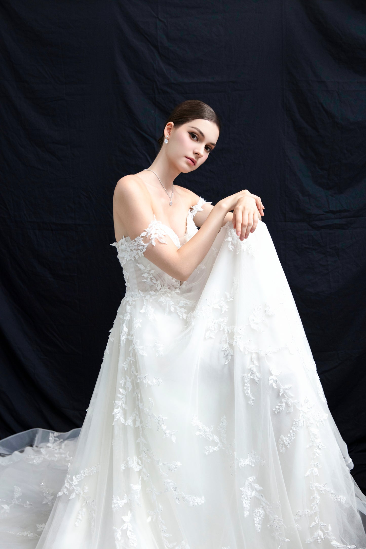 This wedding dress is the result of countless hours of design, with carefully chosen materials. Each detail has been meticulously sewn by skilled tailors, and every embellishment is entirely hand-stitched. Wearing this dress, you’re sure to stand out from the typical wedding styles. Beyond its unique design, it also offers exceptional comfort and ease of movement.