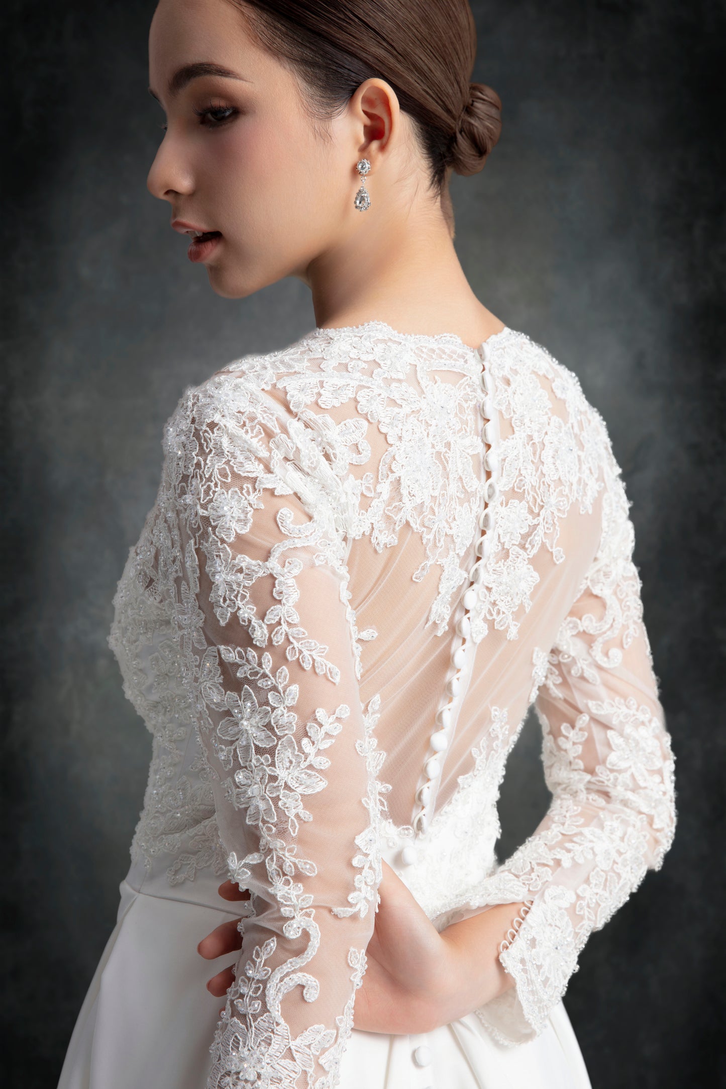 This wedding dress carries an elegant, classic beauty, symbolizing the eternal love in marriage. It may also hold deep sentimental value, passed down through generations within the family, reflecting loyalty and a connection to tradition.